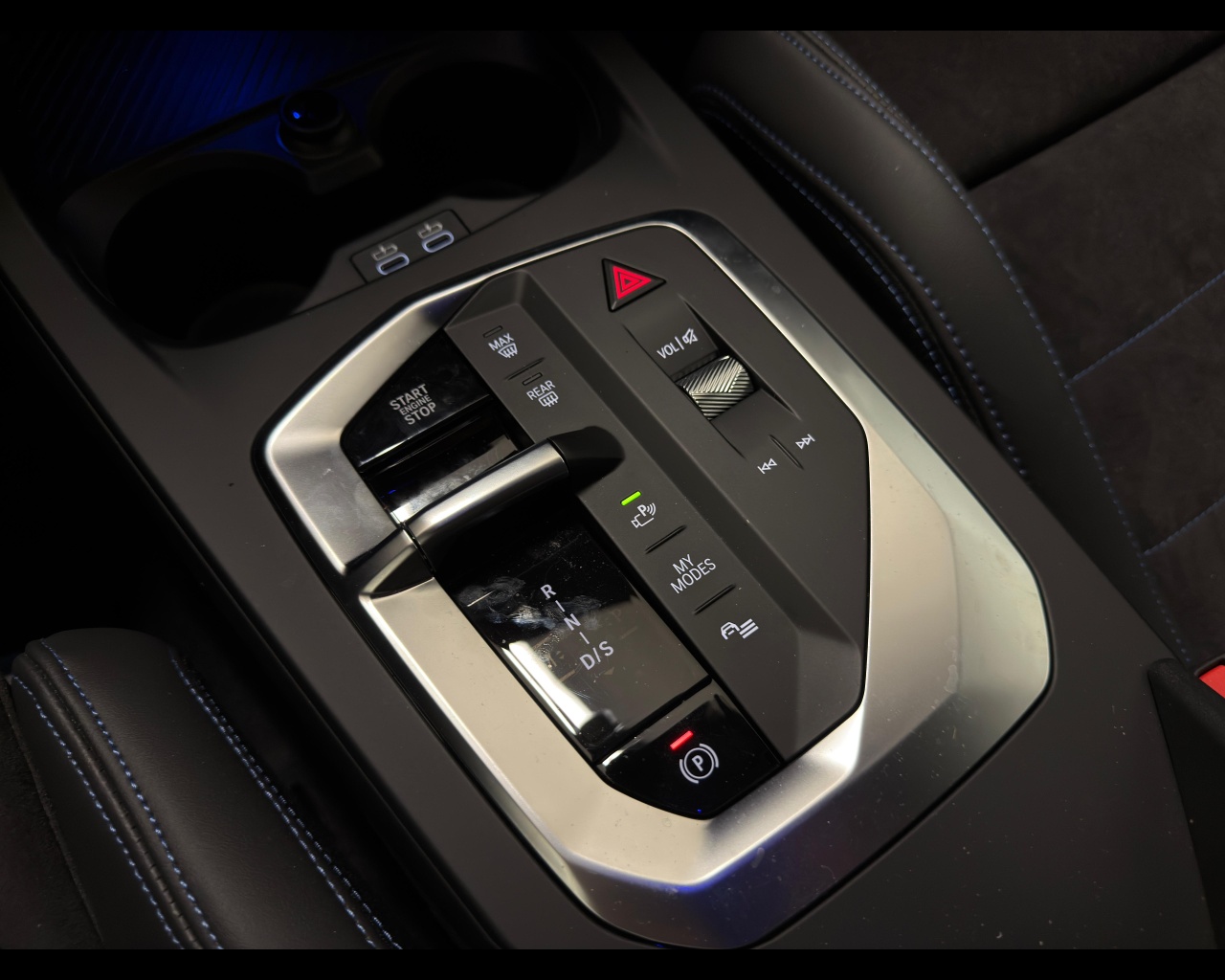 Colore Interno Inteni in Alcantara/Veganza Black con cuciture a contrasto Blue