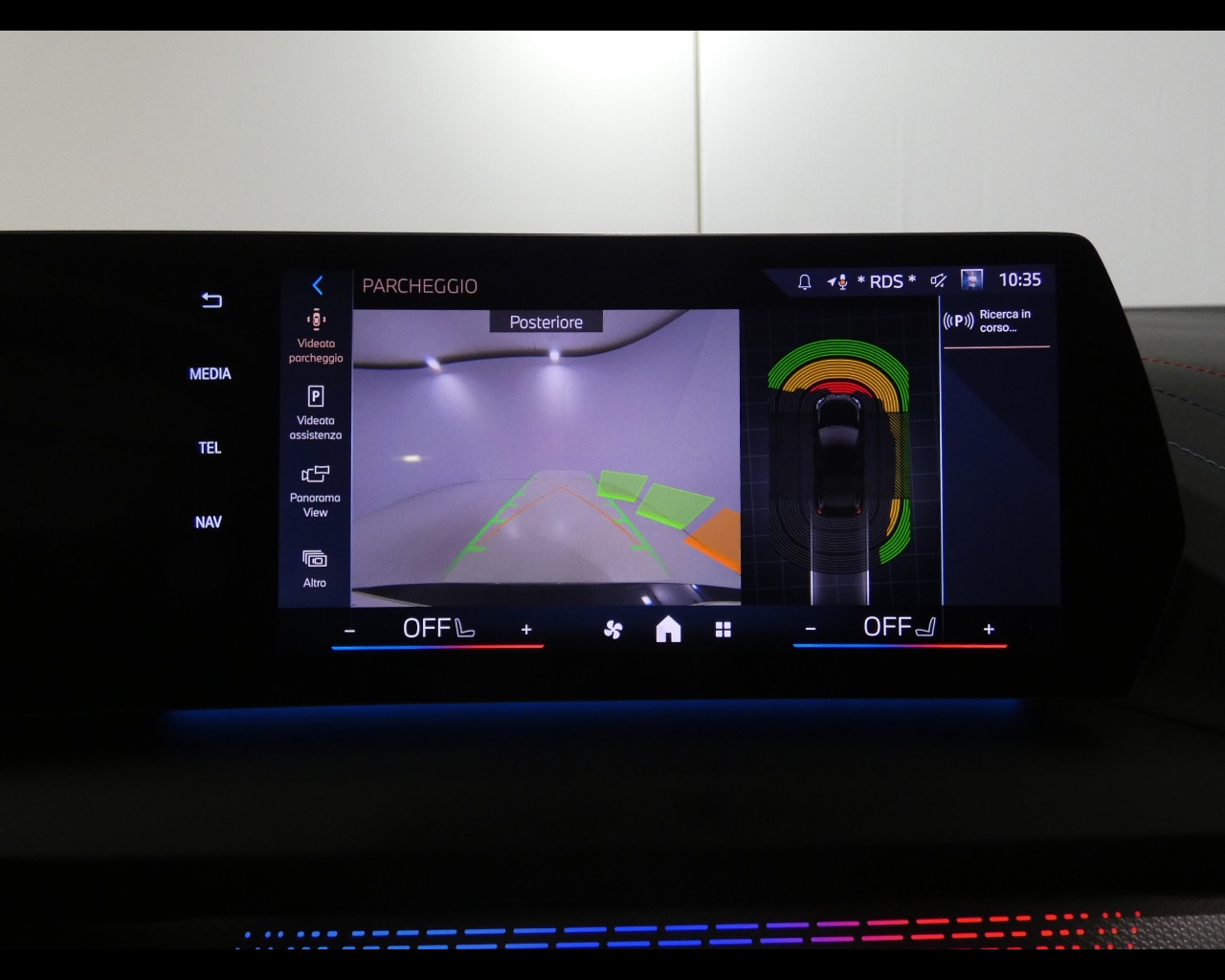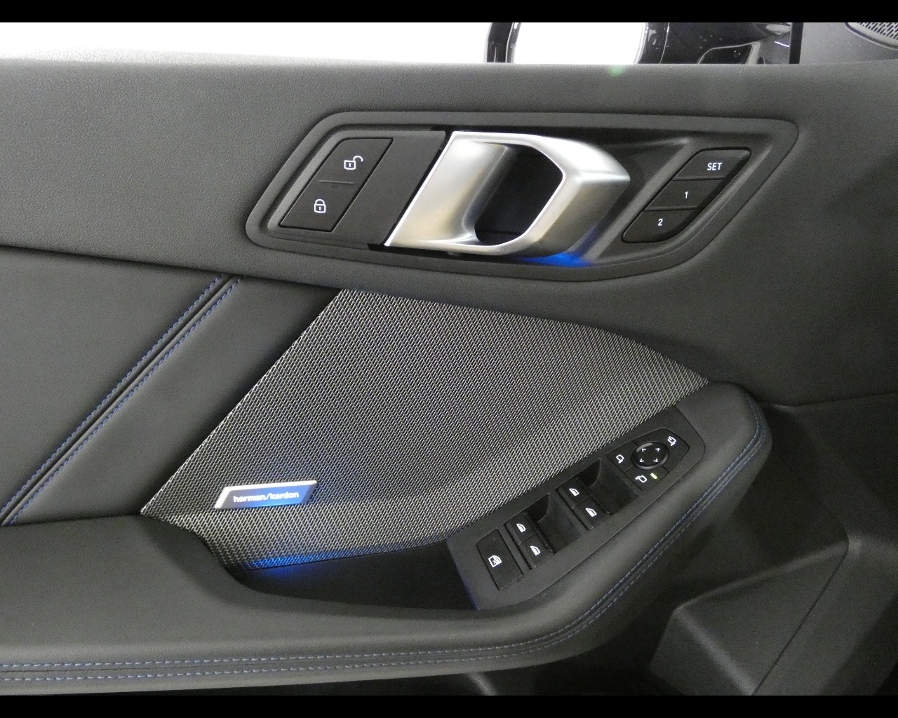Colore Interno Inteni in Alcantara/Veganza Black con cuciture a contrasto Blue