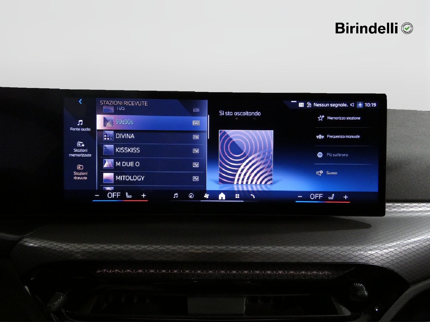 Speaker stereo con 6 altoparlanti: 2 midrange anteriori, 2 midrange post., 2 bassi sotto i sed. ant.