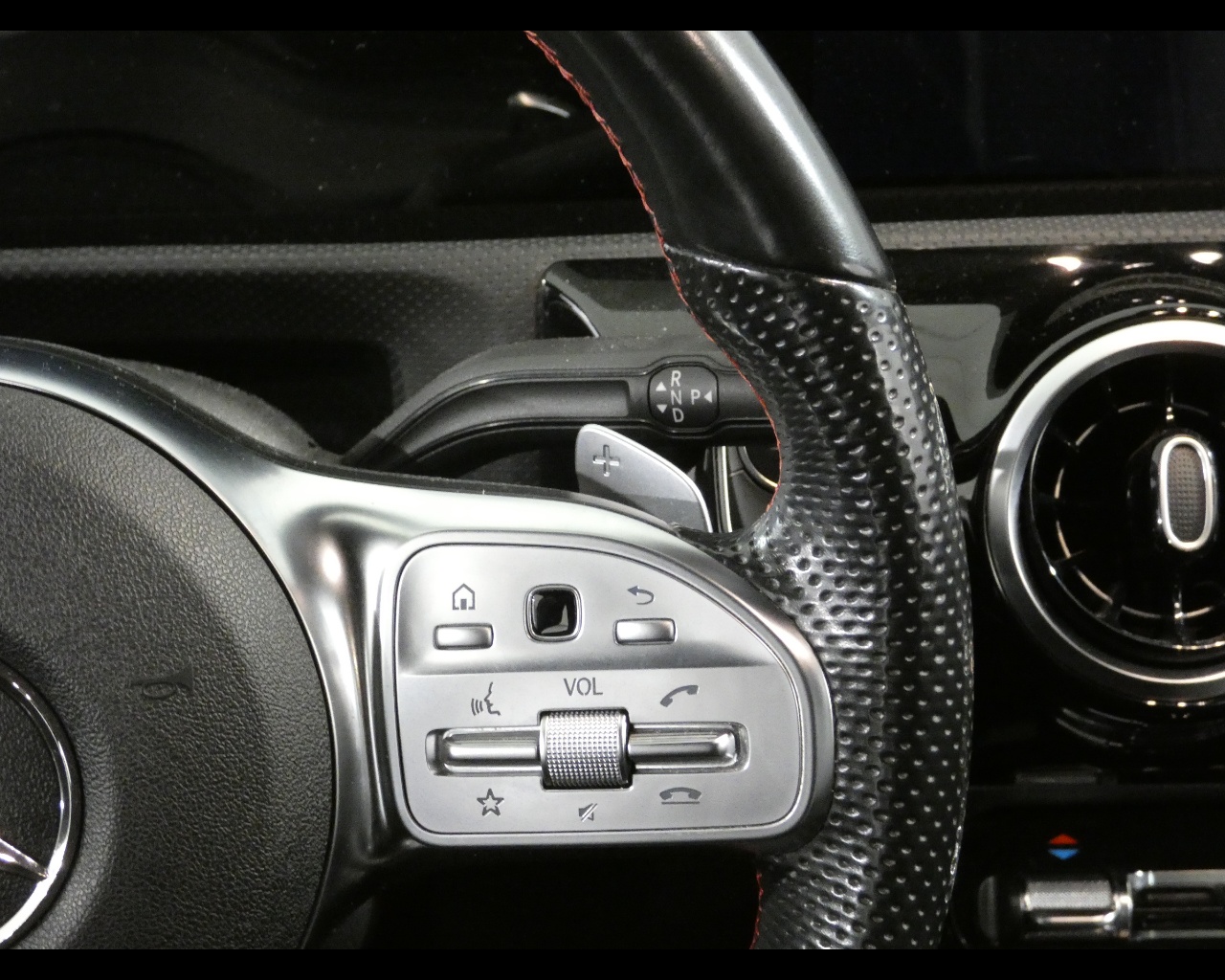 Volante sportivo multifunzione in pelle nappa a tre razze, con pulsanti touch control