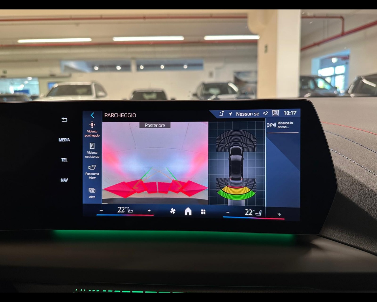 Colore Interno Inteni in Alcantara/Veganza Black con cuciture a contrasto Blue