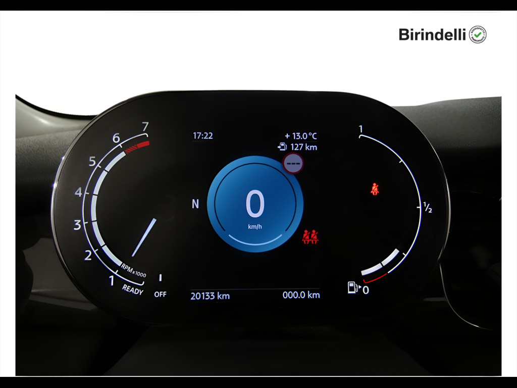 Tachimetro e contagiri dietro al volante con indicatore di temperatura esterna, velocità, ora e data