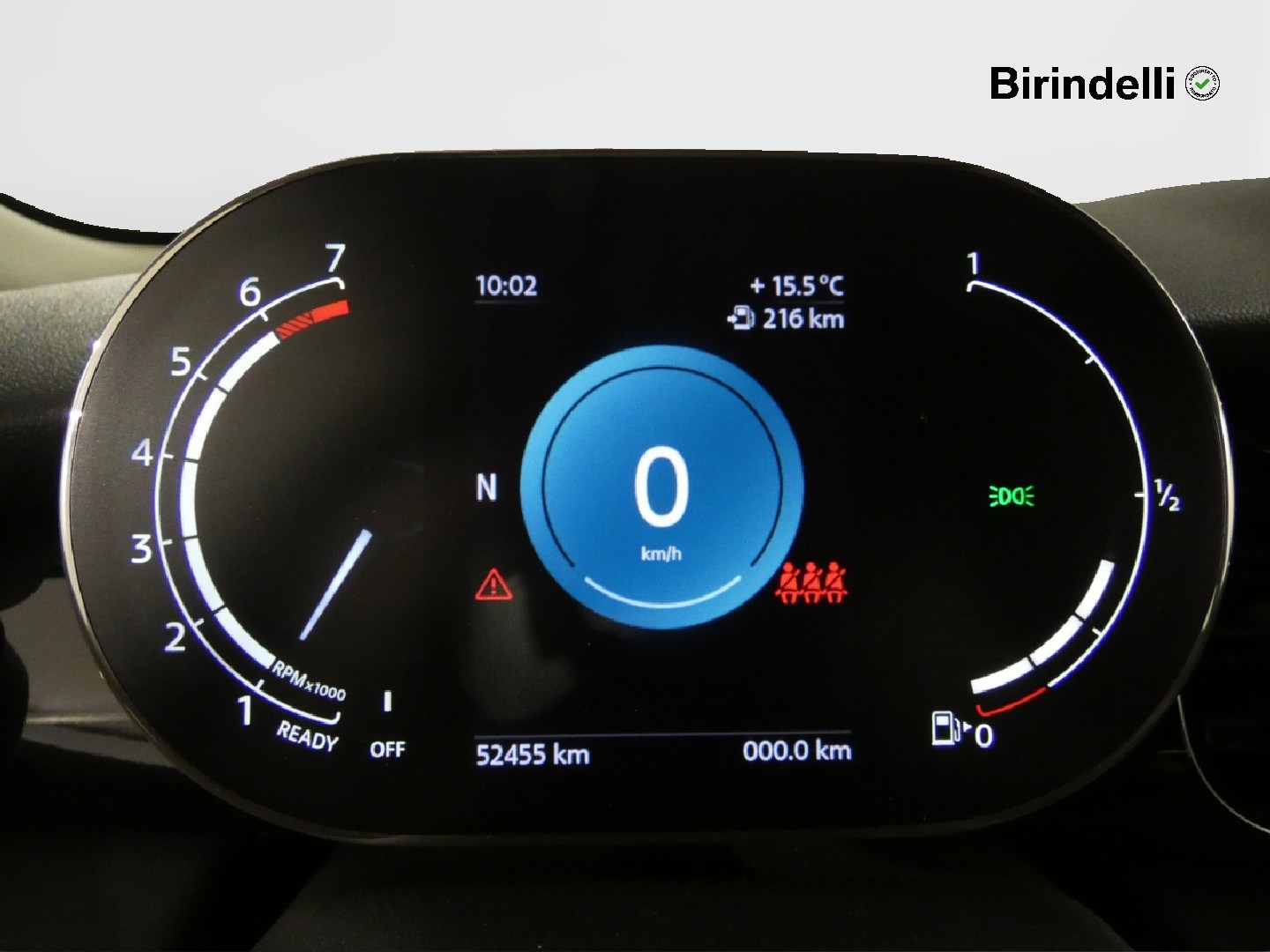 Tachimetro e contagiri dietro al volante con indicatore di temperatura esterna, velocità, ora e data